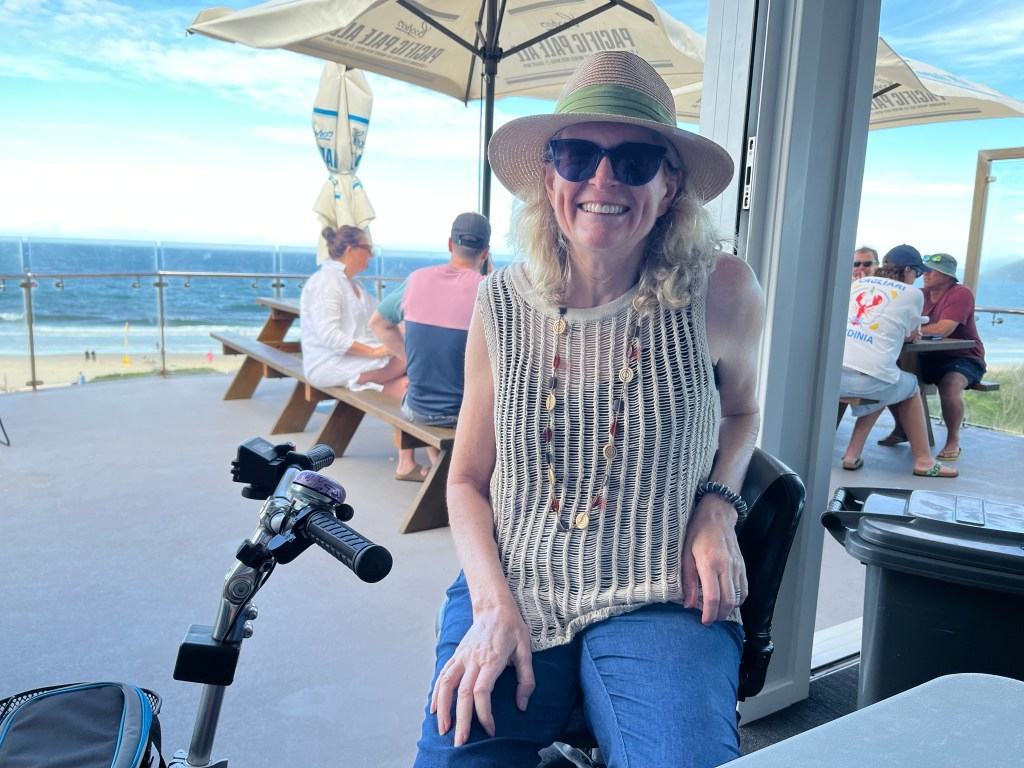 You cannot get onto the balcony with your mobility scooter but really, why would you want to. It’s so windy I am I’m so happy to stay put. I’m watching my sunnies sliding across the table…gotcha! Yep super windy in the arvos.