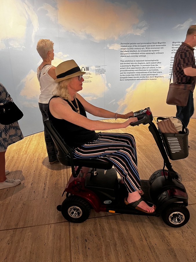 You know how sometimes things just work out well? This was that day. I get the saying ‘the stars were aligned’. Everything slotted into place. Having a mobility scooter inhouse meant I was able to see the whole exhibition. I even grabbed lunch there. What a great initiative by the art gallery.