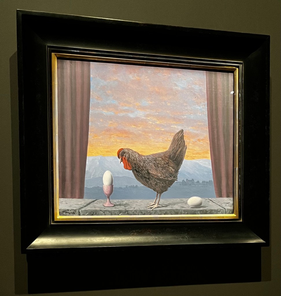 Magritte had a real sense of humor. At least I think he did. It’s so evident in so much of his work. There’s the chicken and the egg picture which is so detailed until you click on what it is about.