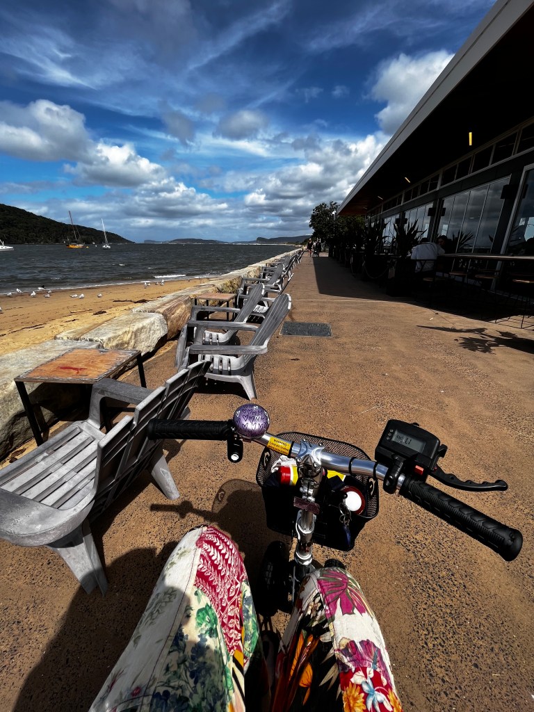 Today I am at a seaside town up the coast from Sydney called Ettalong. It has a long strip mall. I’m enjoying the sites when I stumble across 3 mobility scooters at the local pub. I had to get a photo of me on my scooter as I rarely see mobility scooters in a ‘skedaddle’. .. well unless they are for sale at a shop and I doubt that counts.